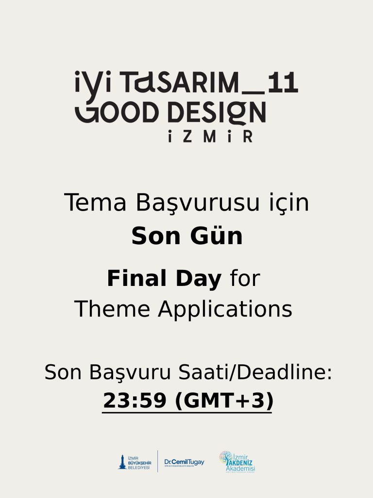 İyi Tasarım/Good Design İzmir_11 için tema başvuruları sona erdi.