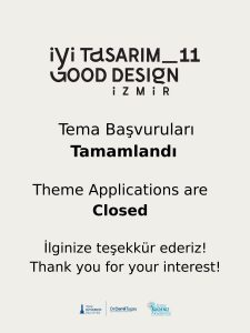 İyi Tasarım/Good Design İzmir_8: Tema Çağrısı’na göstermiş olduğunuz ilgi ve katılım için teşekkür ederiz.